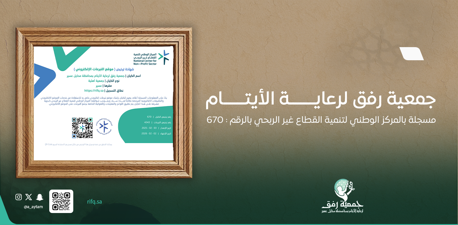 رفق هي جمعية أهلية ذات نفع عام بشخصية اعتبارية مستقلة تتمتع بالأهلية الكاملة، وهي تعنى بشؤون الأيتام ومن في حكمهم فى محافظة محايل عسير .